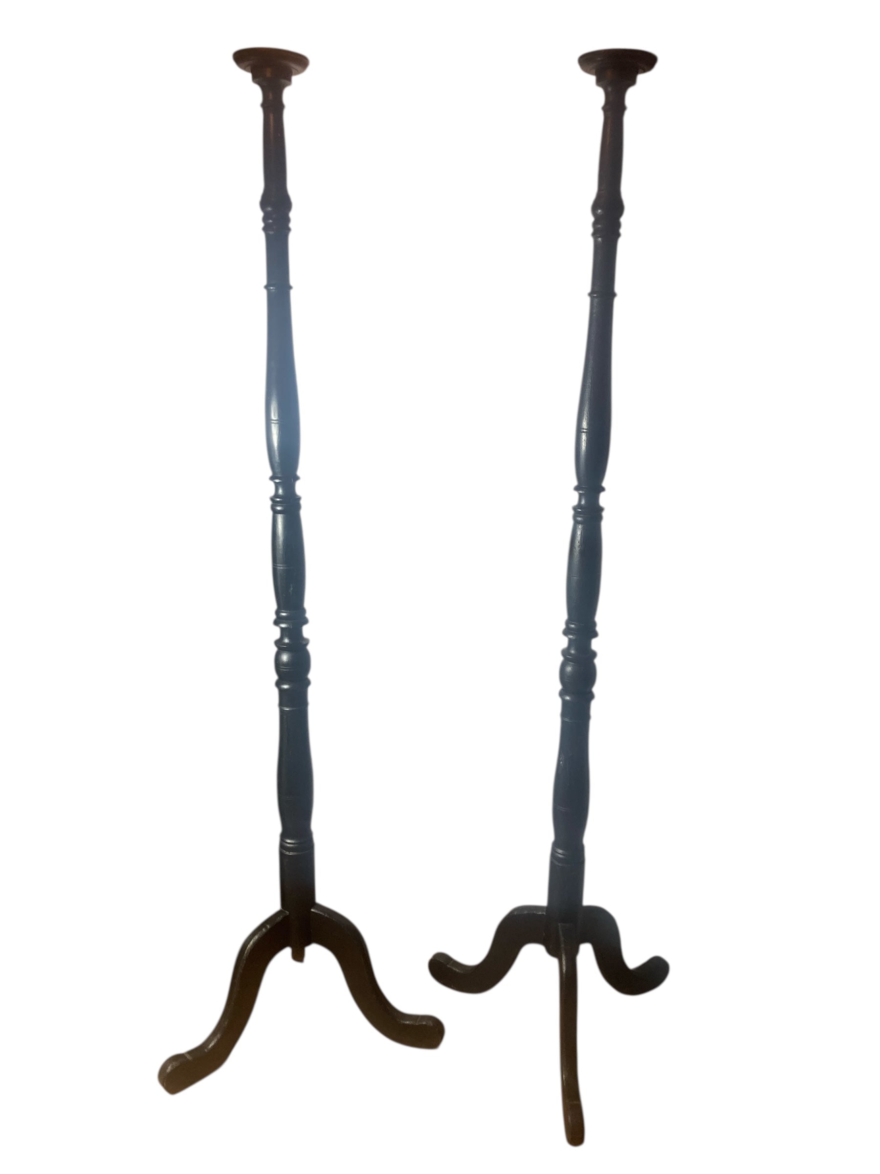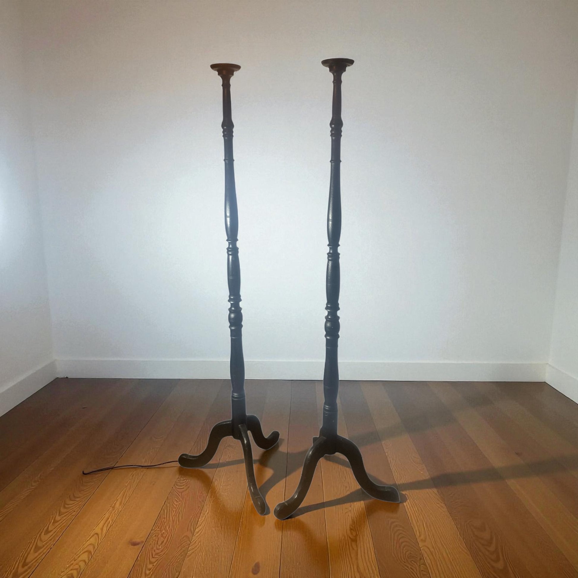 A pair of Tall Ebonised Tri Leg Torcheres