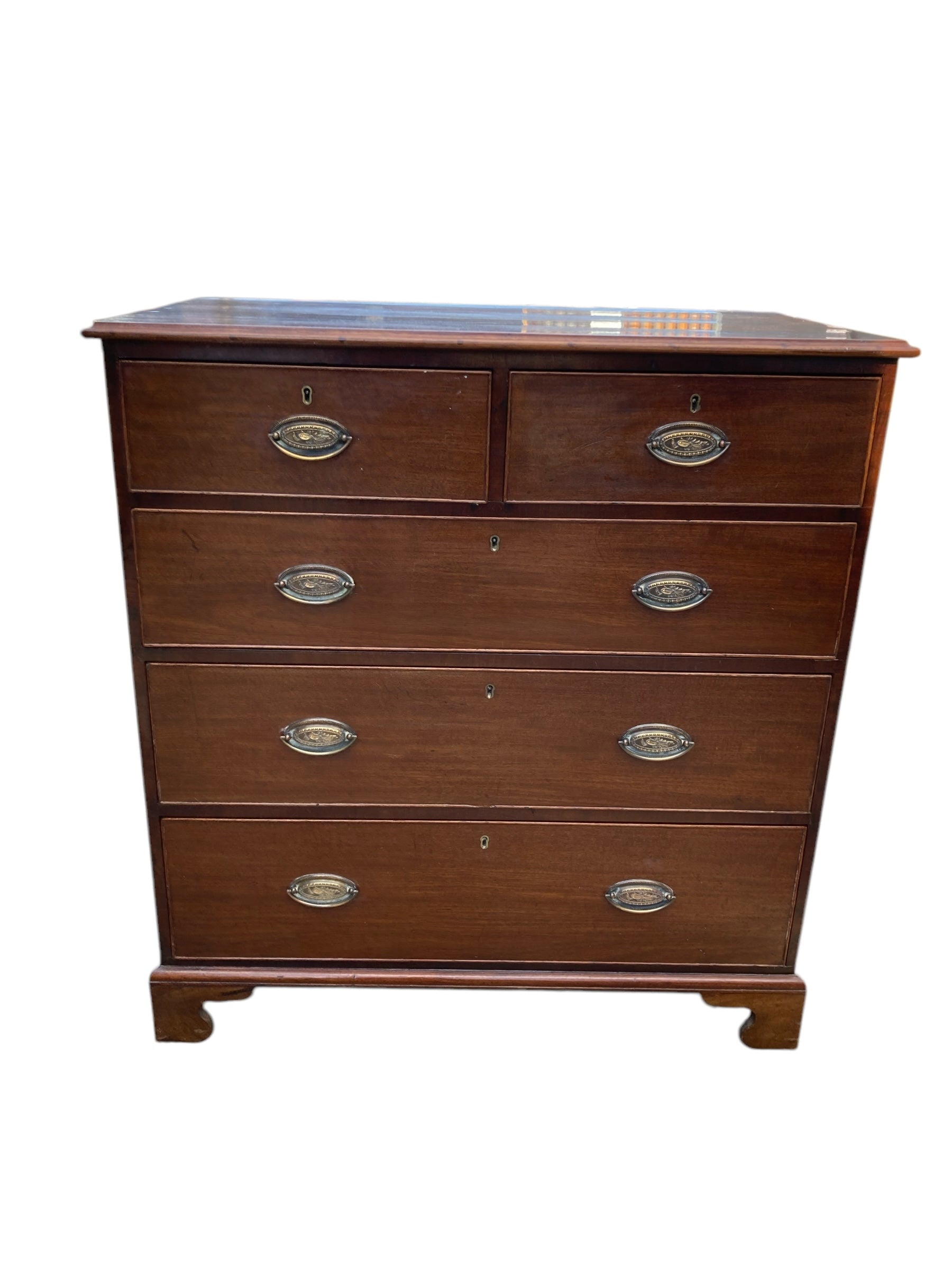 Georgian Mahogany Two over three Five drawer Chest. Late 18th Century George III, graduated drawers. Overall good condition some surface scratches to the top inline with its age, very solid structurely. Classic oval shaped handles sitting on bracket feet.