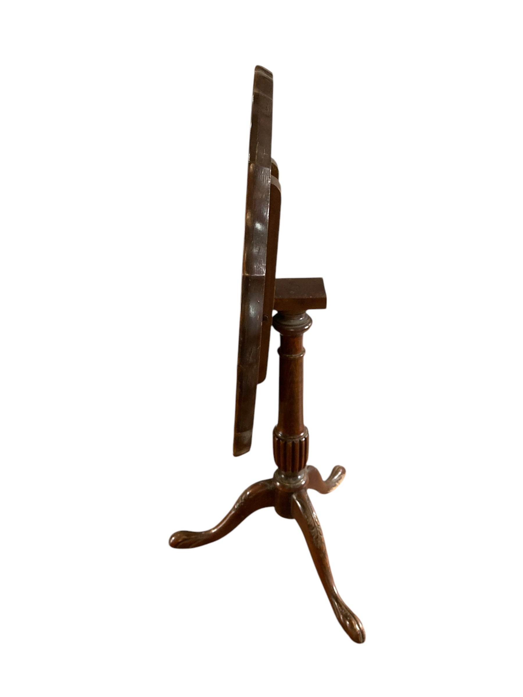 George III Mahogany Pie Crust Tilt top table late 1800's with a one piece snap top on a tripod base with pad feet.