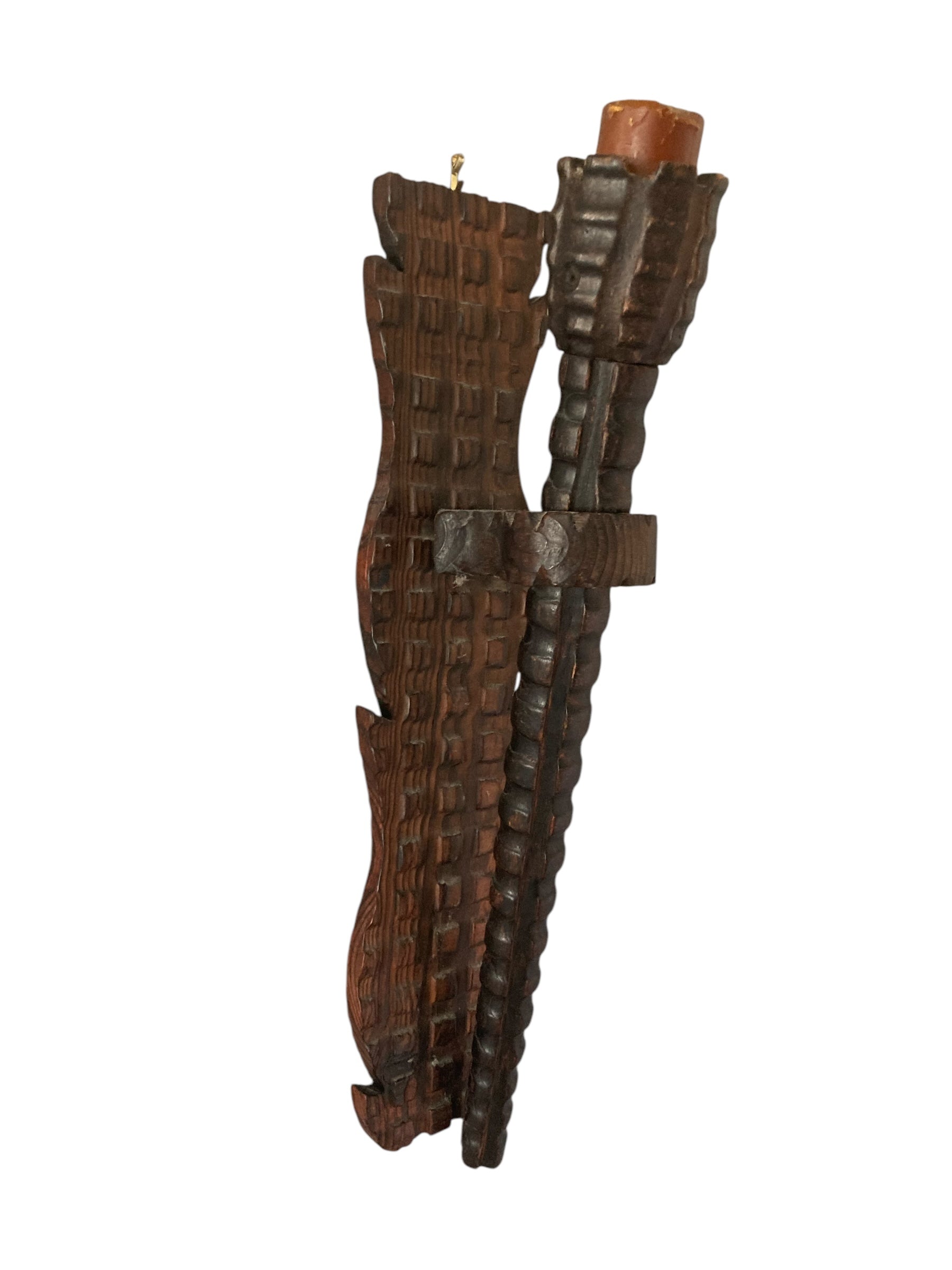Neo Gothic Medieval Style Carved Wood Wall Candle Holder or Torchere