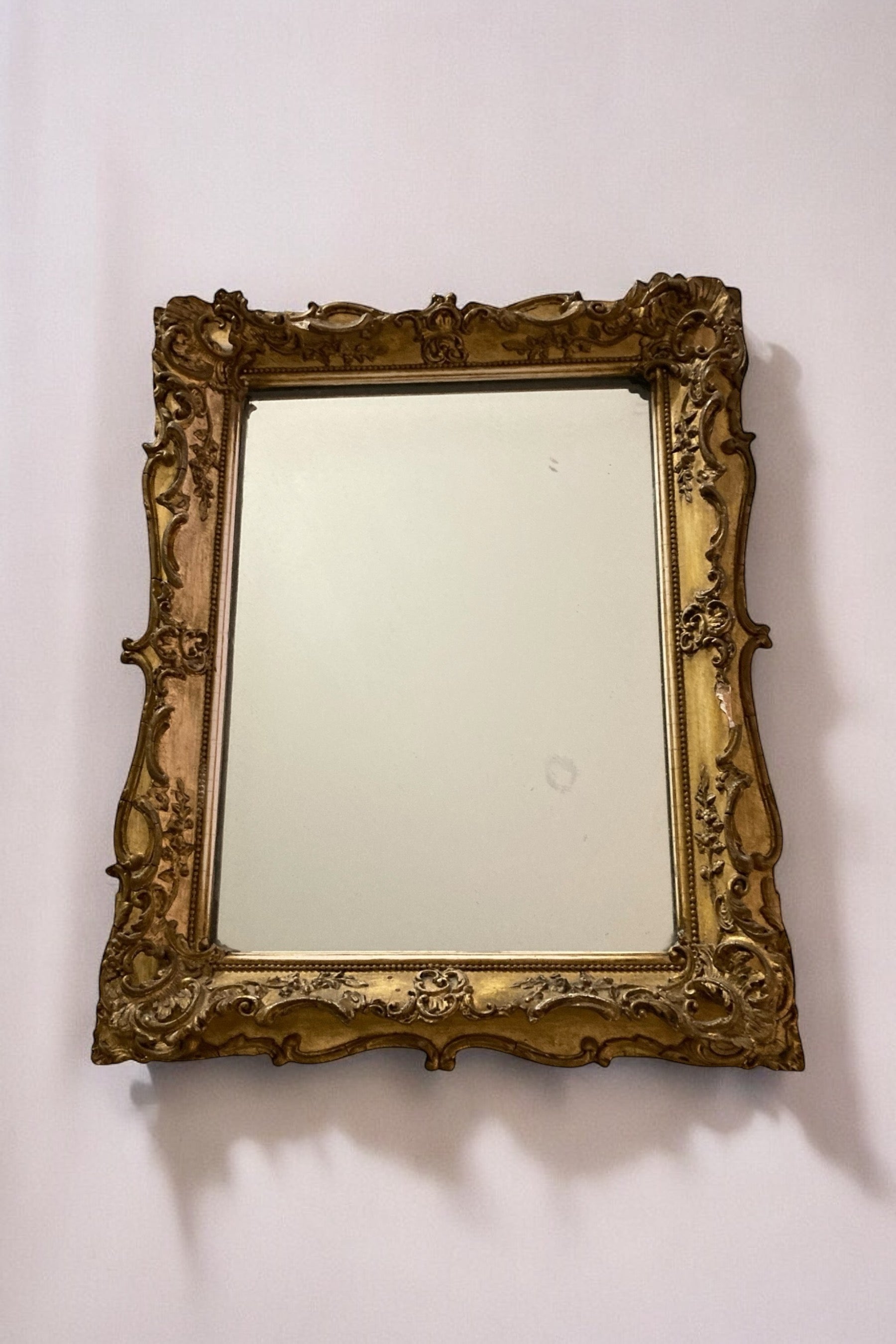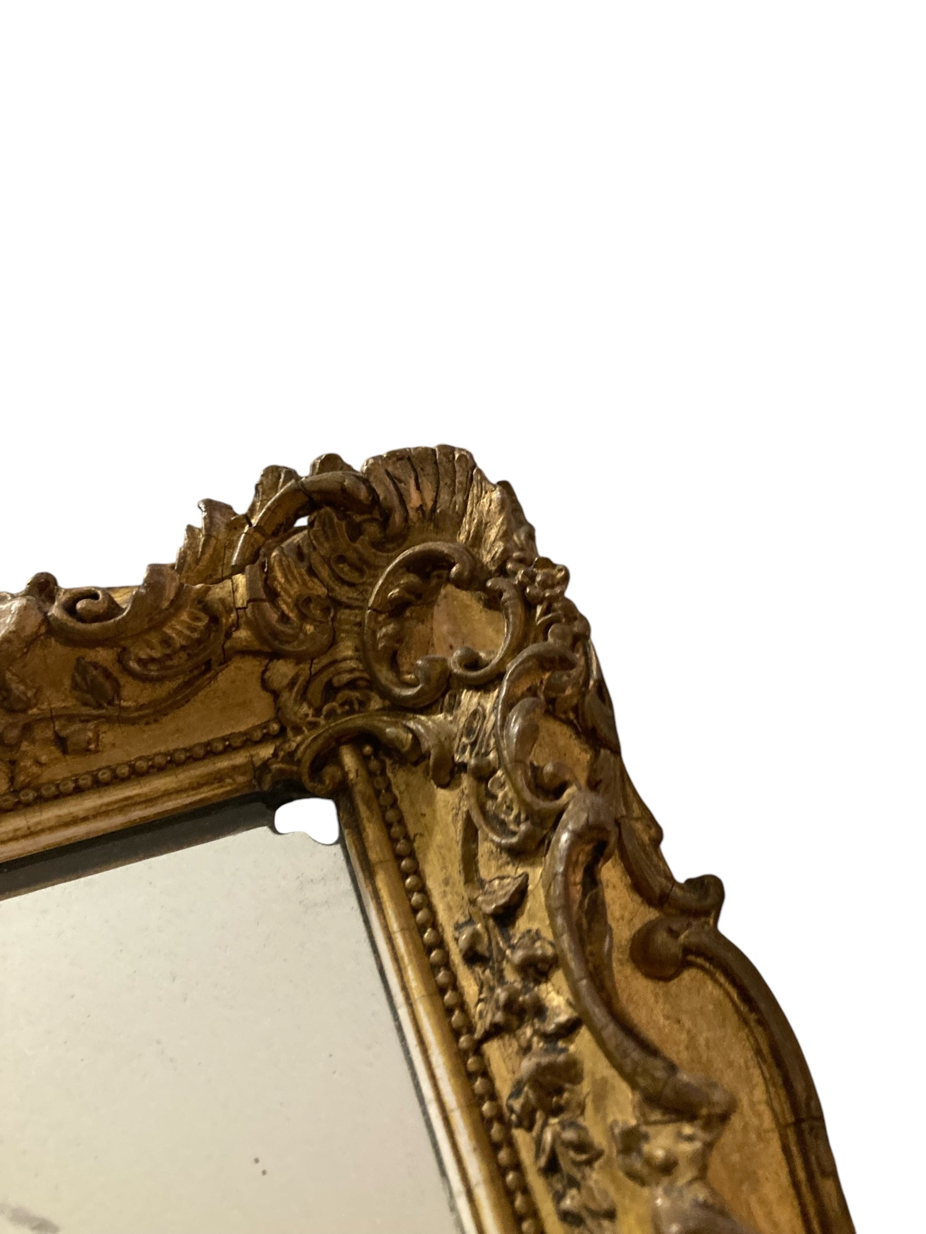 Rococo style gilt gesso rectangular wall mirror. Mild foxing to the glass which adds character and age. CIRCA Mid 1800's. Very small losses to the gilt frame which are unnoticeable to the eye.