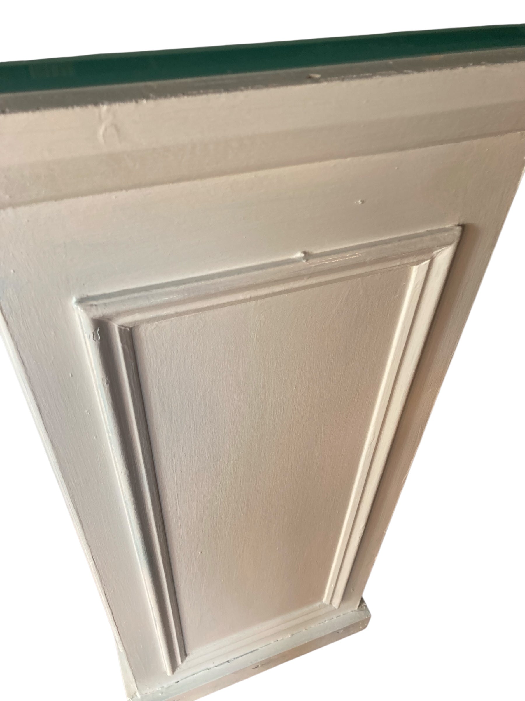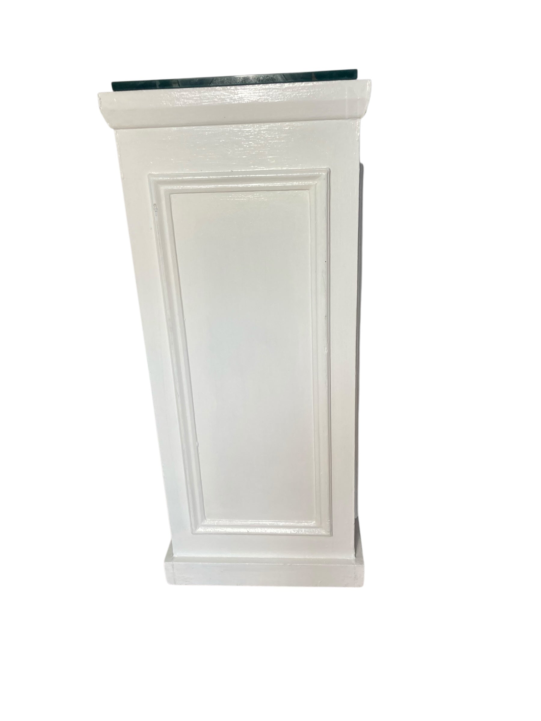 White Column Plynth, Plant, Urn or Bust stand. Event furniture. Painted Gloss white with rustic aged look. recently repainted with a frosted glass removeable top.